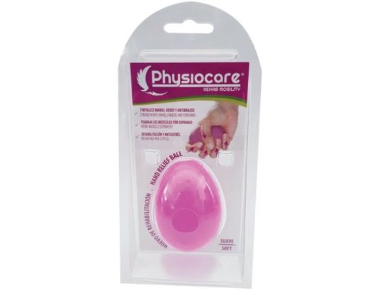 Huevo de Reabilitação Suave Physiocare em rosa, ideal para fortalecer mãos e punhos. Confortável, versátil e ergonômico, perfeito para reabilitação e exercícios diários.