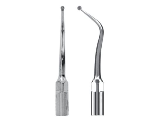 - Ponta esférica diamantada de alta precisão para micropreparações conservadoras.