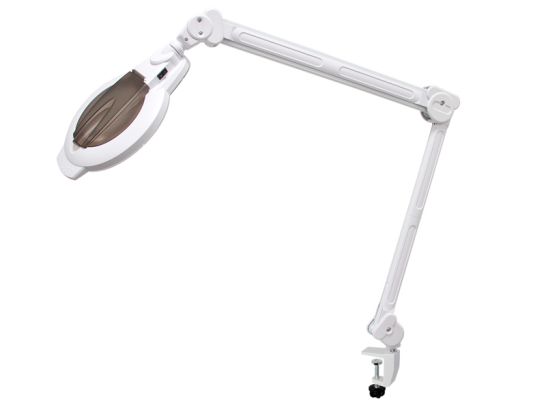 Luminária de mesa com LED e lupa (ampliação de 3x e 8x). Ideal para trabalhos estéticos e de precisão. Braço articulado suave, luz fria eficiente e capa protetora. Design compacto e estável para mesas de trabalho. Máxima visibilidade dos detalhes.