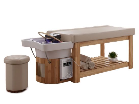 A marquesa de massagem japonesa Asahi Wood Harmony Head Spa foi concebida para proporcionar uma experiência excecionalmente relaxante, ideal para os clientes que procuram o máximo conforto. O seu acabamento meticuloso, estofos confortáveis e design ergonómico fazem dela a escolha perfeita para qualquer salão ou spa que procure serviços de alta qualidade.