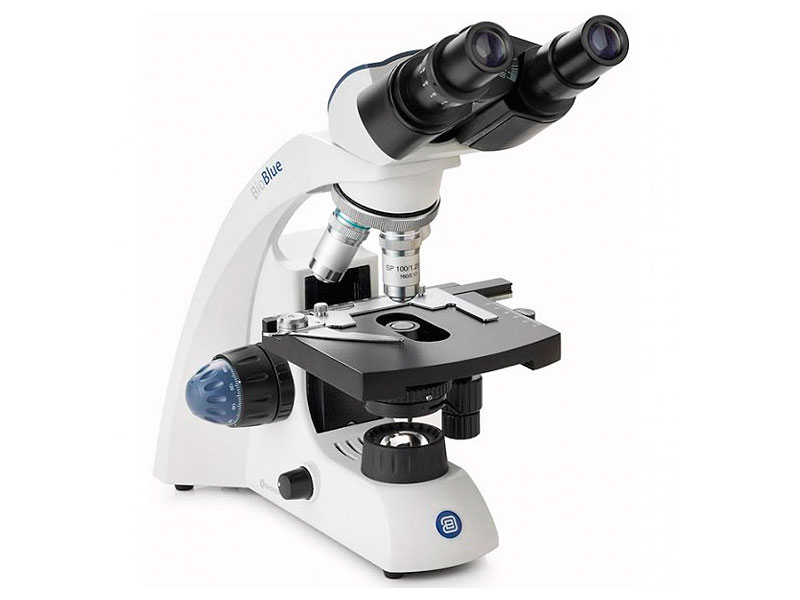 Microscópio binocular, LED com bateria BioBlue BB. 4260 com sistema de focagem macro e micrométrica.