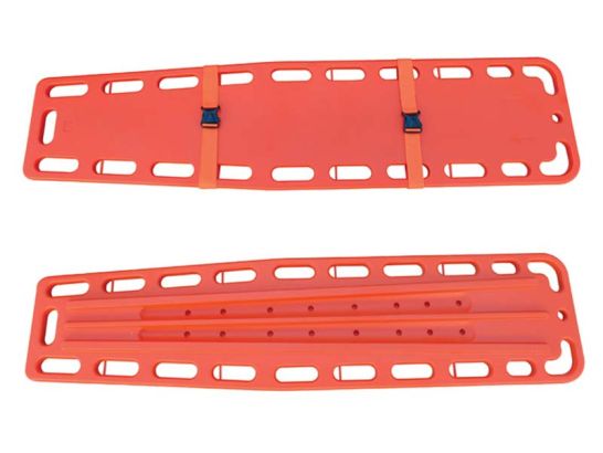 Tábua de lombada de uma só peça em PEAD com cintos para um transporte seguro.