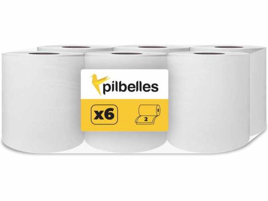PILBELLES 6 Rolos de Papel Toalha de Mão Dupla Camada Extra Macia | Cor Branca
