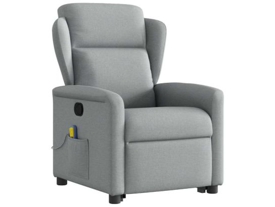 Desfrute do conforto da Poltrona de massagem Reclinável elevação de pessoas em Tecido Cinza Claro, ideal para relaxar, com massagens e suporte para elevar a qualidade do seu dia.