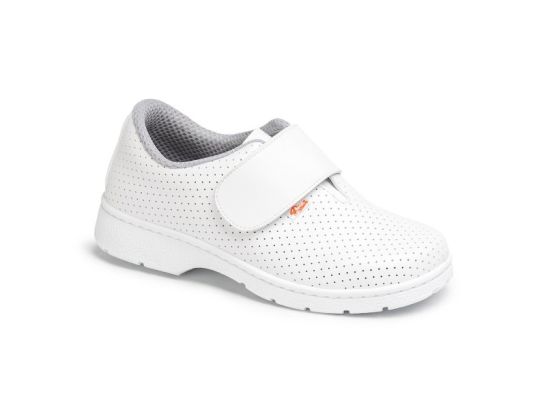 O Zapato Perforado 1807-LM Branco DIAN oferece conforto e segurança, com design antiderrapante, transpirável e fechamento em velcro. Ideal para quem passa longas horas em pé.