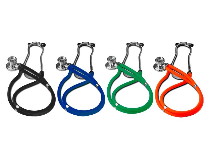 Stetoscop cu cap dublu 5 în 1, model Joratrap. Potrivit atât pentru adulți, cât și pentru copii, cu tub dublu și disponibil în diferite culori.