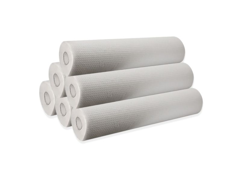 Pachet de 6 role de hârtie Eco Wellcore pentru targi. Lățimea sa este de 57 cm și are o lungime totală de 60 m. Pieptene interior are 3 cm în diametru.