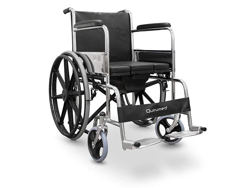 Scaun rotile din otel inoxidabil, pliant si autopropulsat manual, cu vas de toaleta
