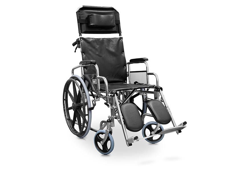 Scaun cu rotile pliabil cu cadru din otel cromat si sezut lat de 46 cm. Cotiera pentru picioare, cotiera și tetiera sunt detașabile pentru un transport și/sau depozitare mai bun. Acest model încorporează un sistem de frânare eficient