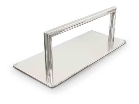 Suport pentru picioare metalic simplu și elegant, cu finisaje cromate, cu o bază dreptunghiulară, cu cauciuc antiderapant. Complementul ideal pentru optimizarea spațiului din spațiile dvs.