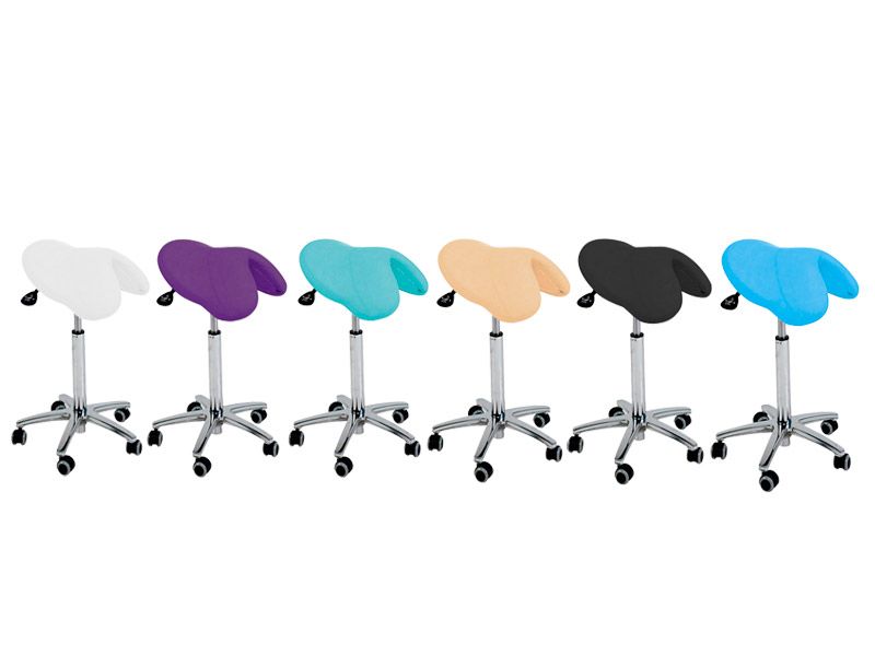 Scaun în stil ponei pentru profesioniștii din domeniul sănătății, cum ar fi kinetoterapeuți, dentiști, maseuri etc. Are 5 roți rotative pentru a-i facilita mișcarea și pentru a lucra mai confortabil. Tapițerie disponibilă în diferite culori.