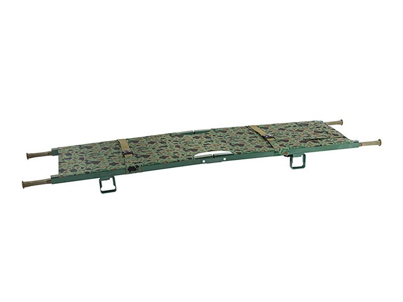 Targa de salvare pliabilă cu pânză laminată cu imprimeu militar. Are doua curele cu inchidere prin presiune care imobilizeaza ranitii si impiedica miscarea si caderea acestora. Poate fi pliat în jumătate și transportat prin rucsac.