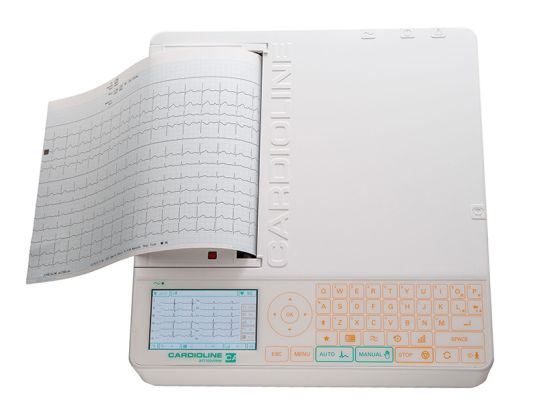 - PC ECG option. Real time display of the 12 ECG leads on a PC endowed with CARDIOLINE® software for the ECG computerised management. The software can offer an optional module for automatic interpretation of the ECG signal.