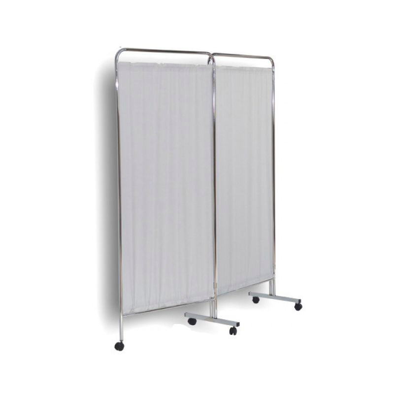 Rumsavdelare i två självständiga delar, ihopfällbara med avtagbart laminerat tyg.