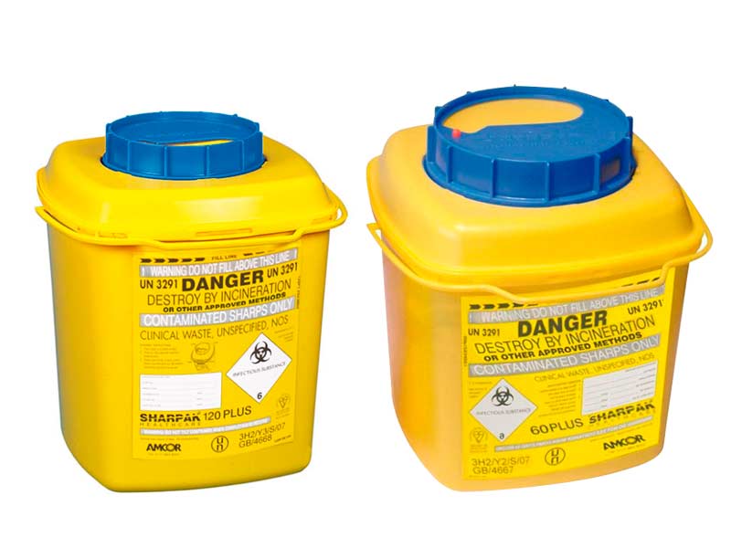 Designed for disposal without risk of accidental puncture of all water, scalpels, etc.