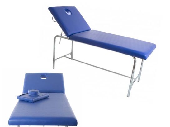 Fixed chrome steel treatment table with paper roll holder, face hole and plug