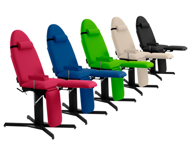 Fixed pedicure or tattoo chair, 3-section with headrest and armrests